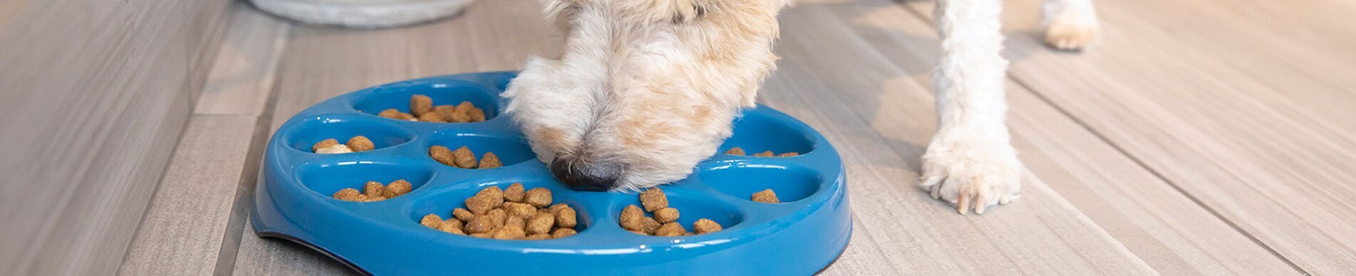 No matter the type, slow feeders live up to their name and SLOW down a dog's eating pace. They are basically a "yellow light" in the dog food bowl world!